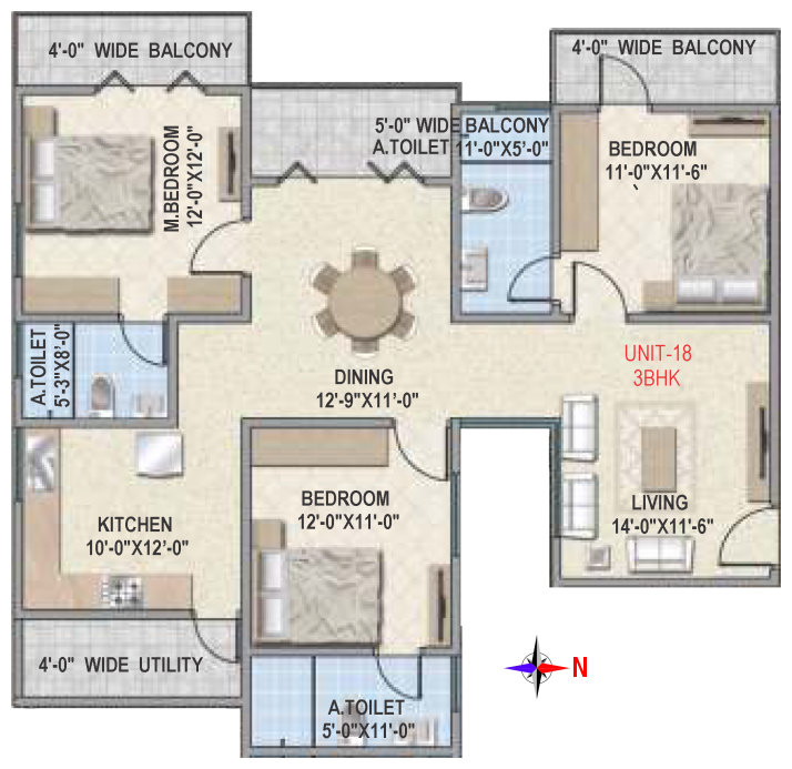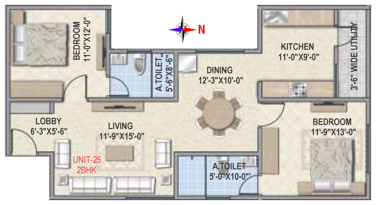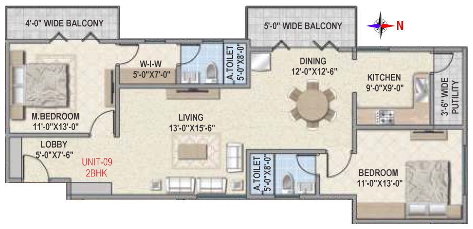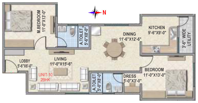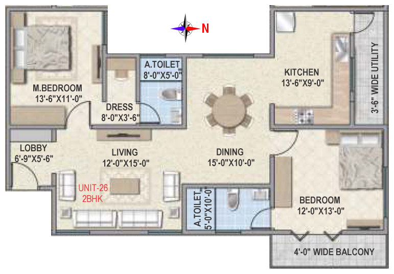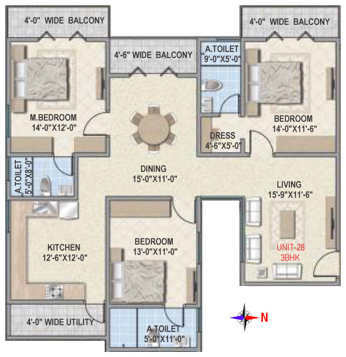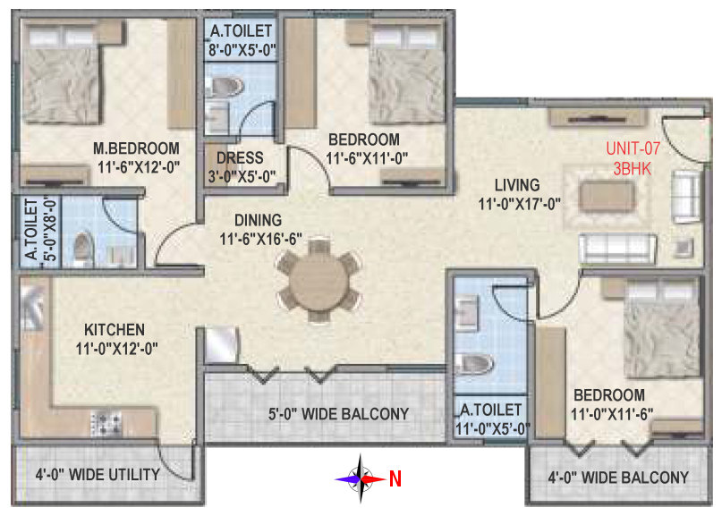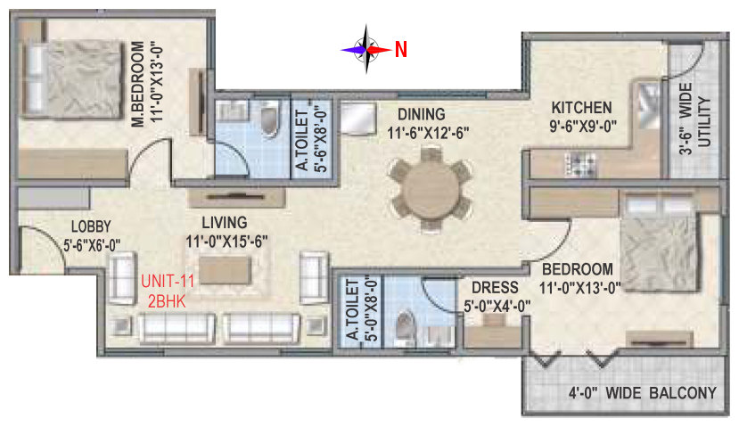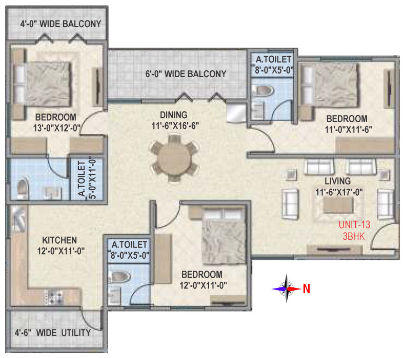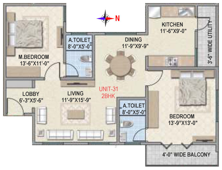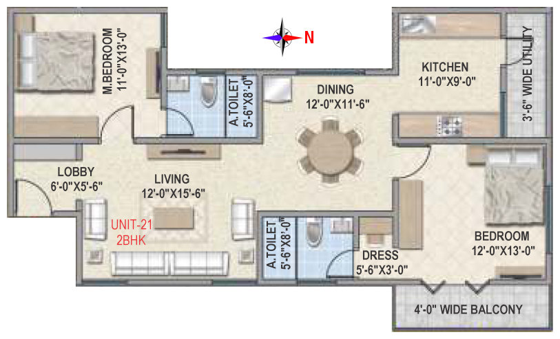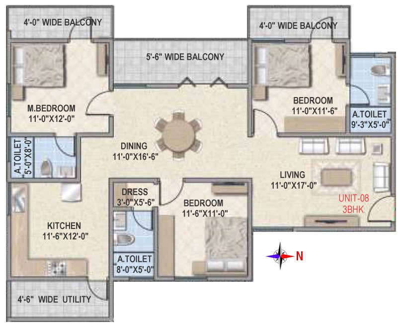 Flooring | Vitrified tile flooring for living, dining, bedrooms and family areas. Kitchen - Vitrified tiles / anti-skid tile flooring. Toilets, Utility & balcony - Anti-skid ceramic tiles flooring. |