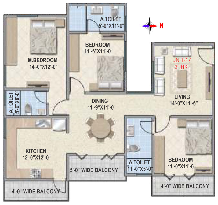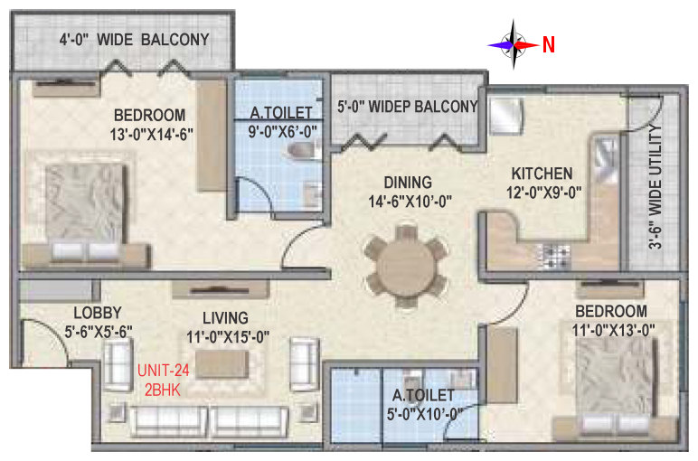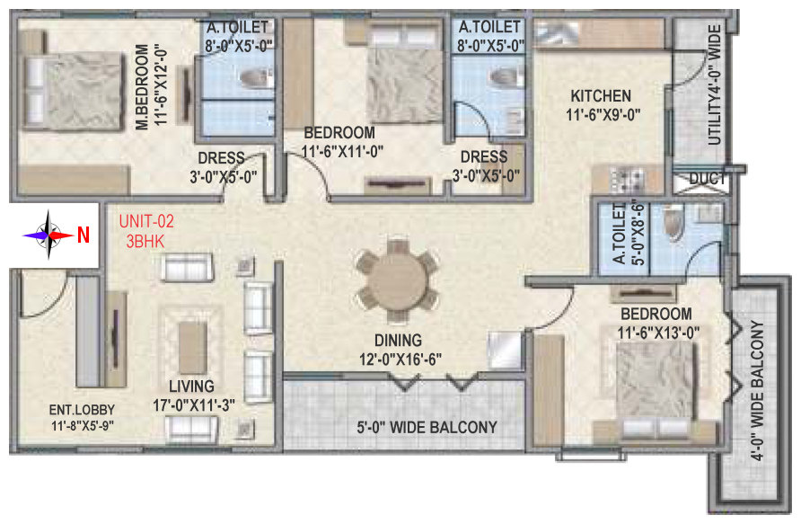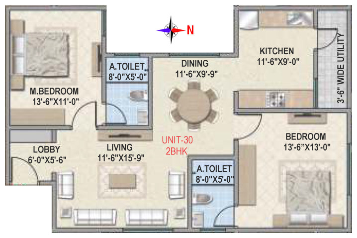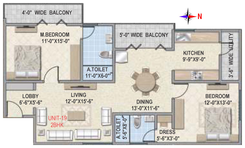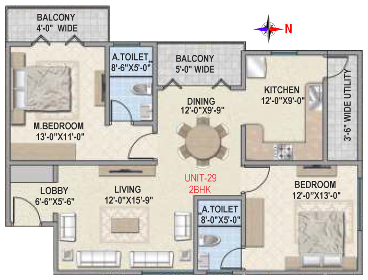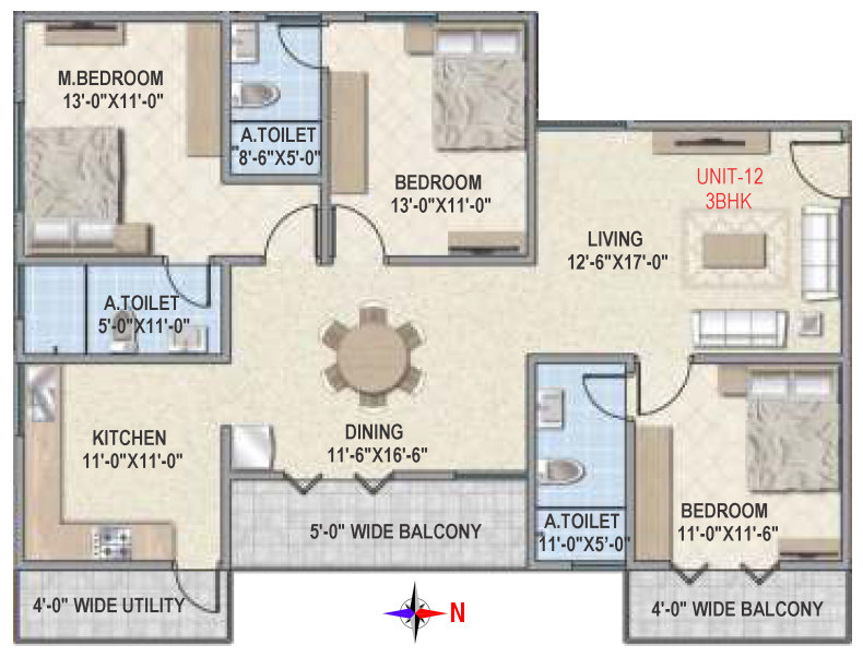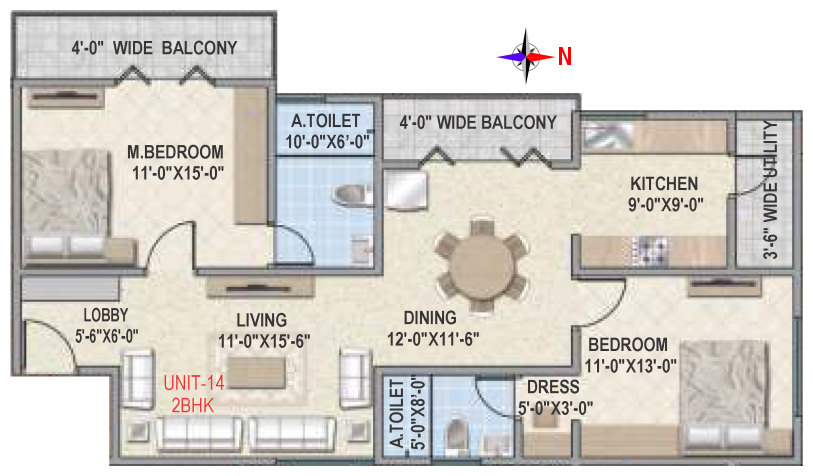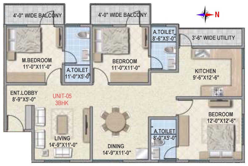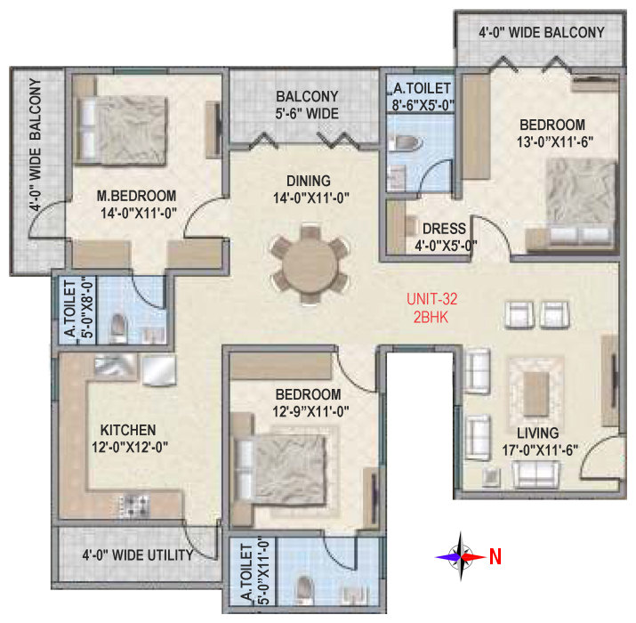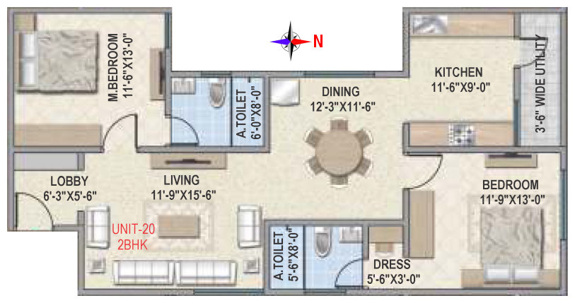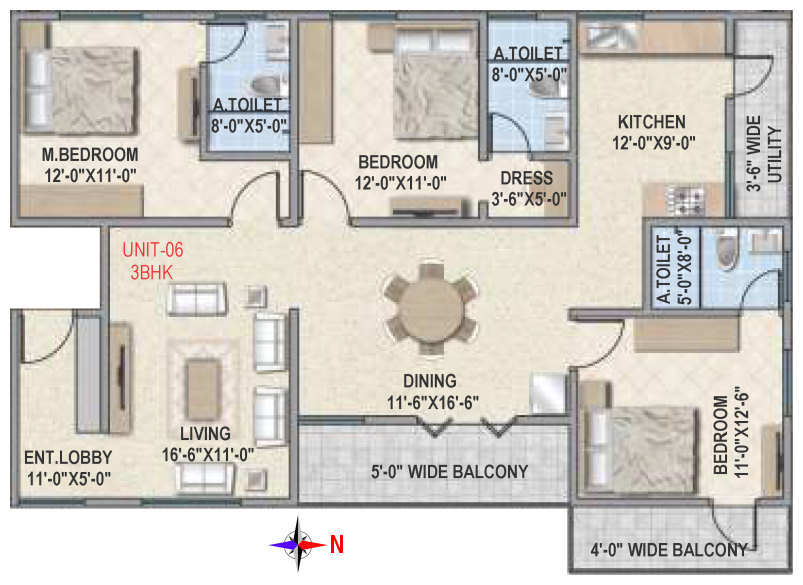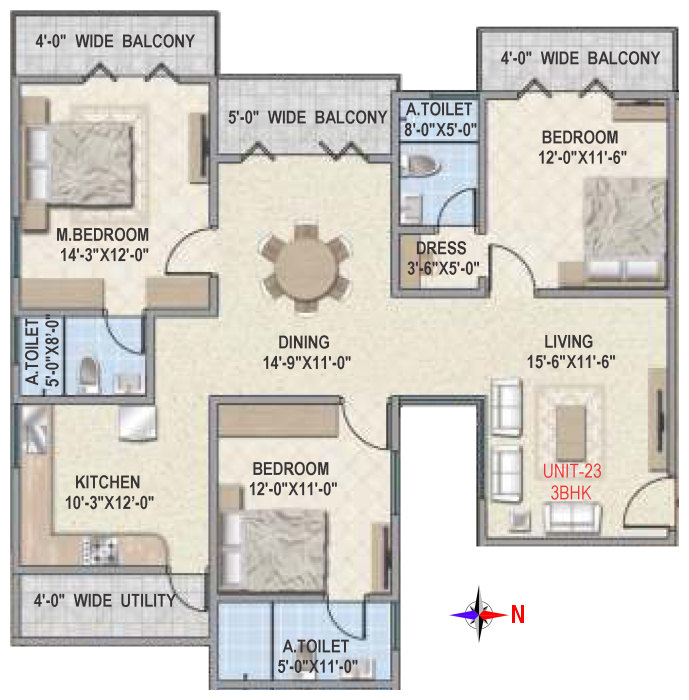 Flooring | Vitrified tile flooring for living, dining, bedrooms and family areas. Kitchen - Vitrified tiles / anti-skid tile flooring. Toilets, Utility & balcony - Anti-skid ceramic tiles flooring. |