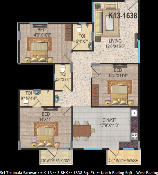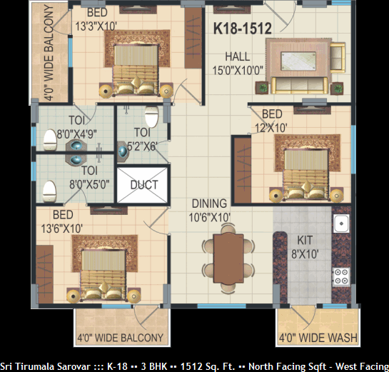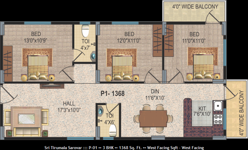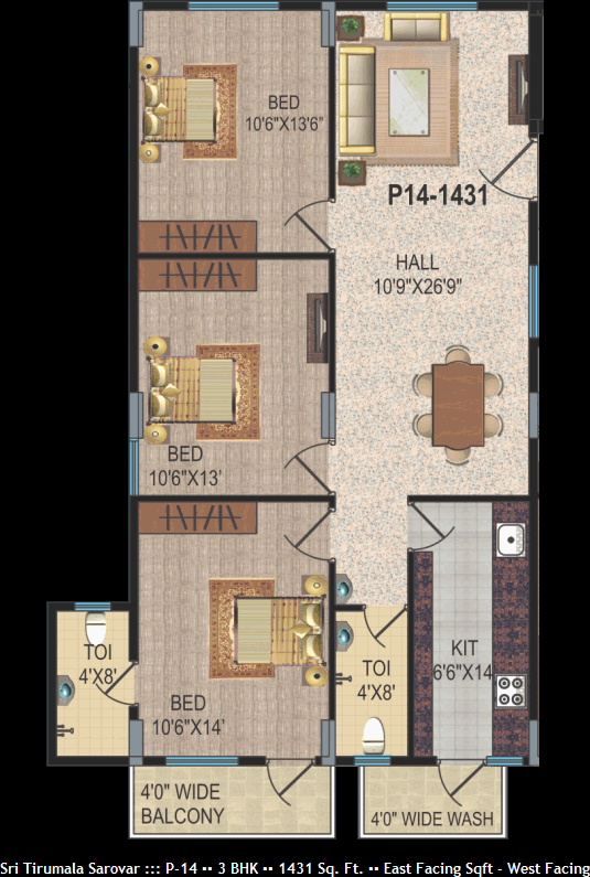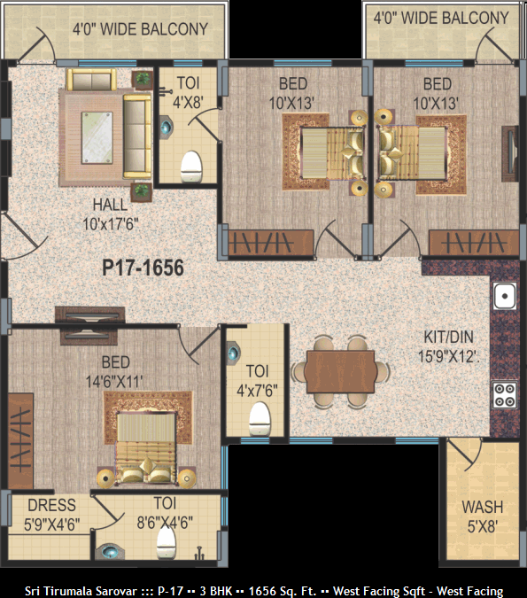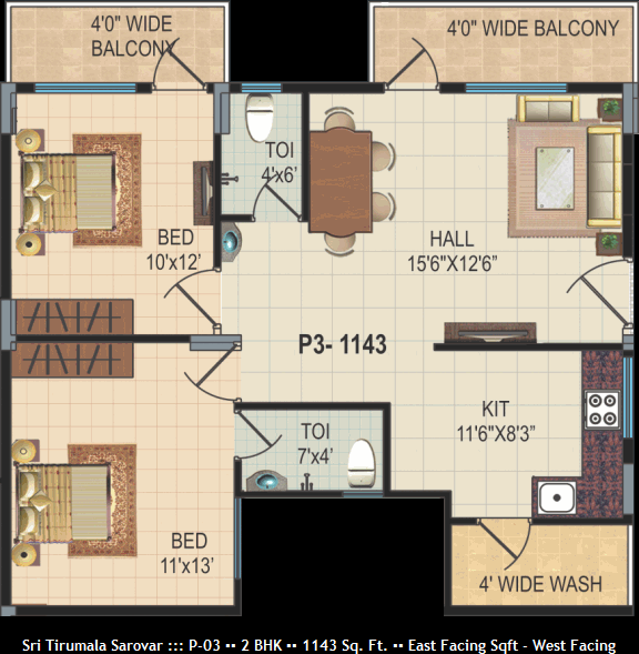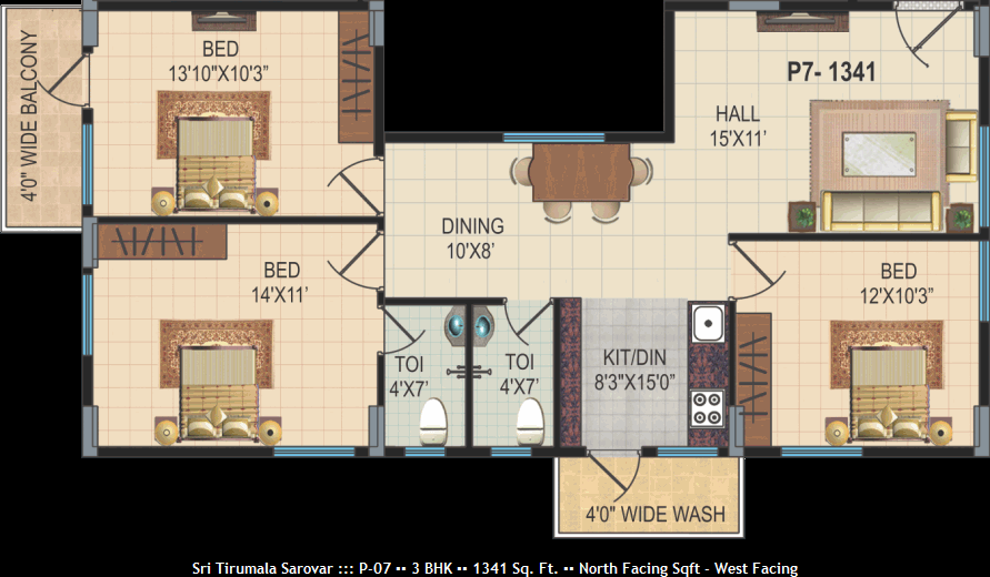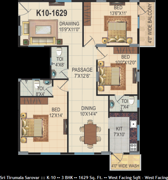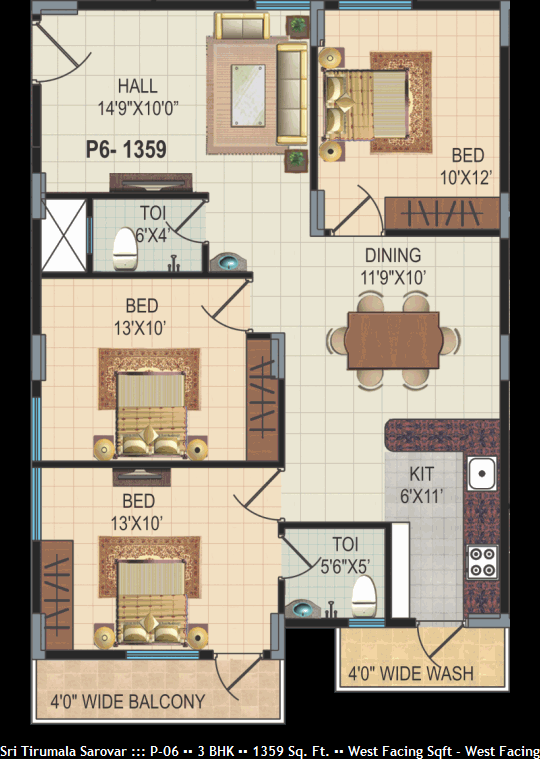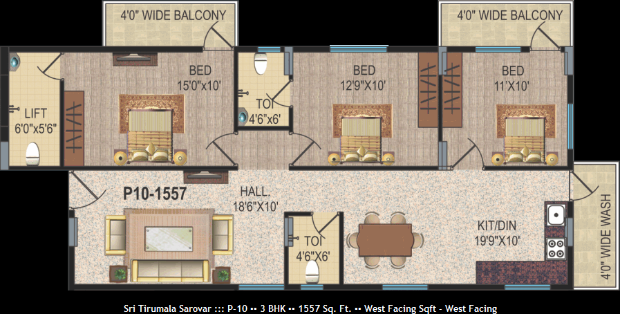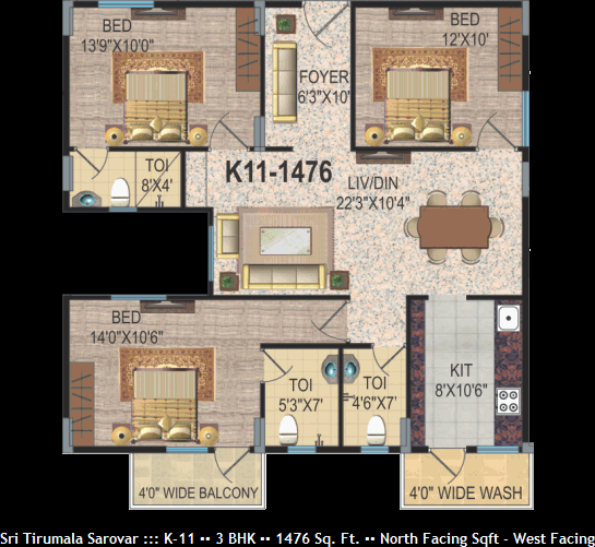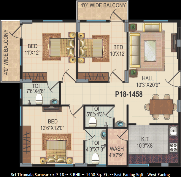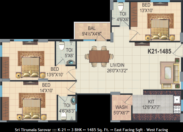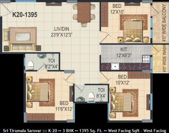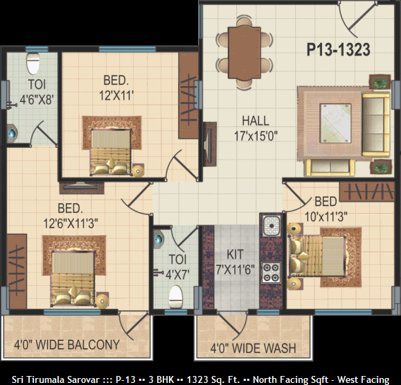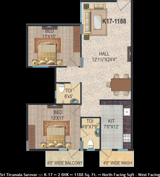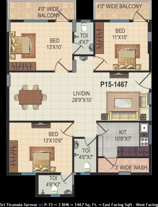 Flooring | Living, bedrooms, dining area & kitchen Vitrified tiles. Toilets - Anti skid tiles flooring with ceramic tiles dado up to door height in master bedroom toilet. Anti skid ceramic tiles flooring with ceramic tiles dado up to door height in other toilets. Balconies - Anti skid ceramic tiles with water proofing treatment. |