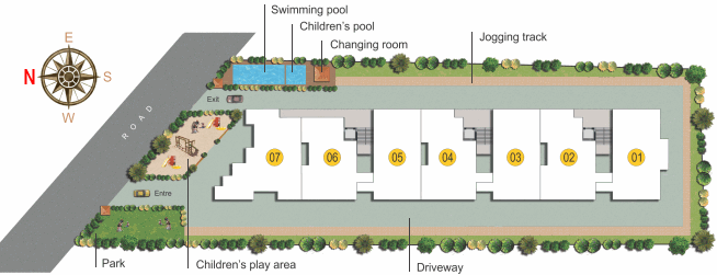Provision for AC in living, dining and bedrooms. Intercom system. Provision for separate wardrobe area in all bedrooms. Provision for separate utility area for washing and drying. Provision for telephone and internet connection. Home automation. [ OPTIONAL ] 24hrs security with CCTV monitor in common areas. Two side open design. Delightful view from all apartments. Three automatic elevators in the entire complex. Generator backup for parking, staircase, lifts and water pumps. Rain water harvesting. Fire fighting provisions. Drip system for perennial greenery. Power backup for each flat upto 1 KVA.