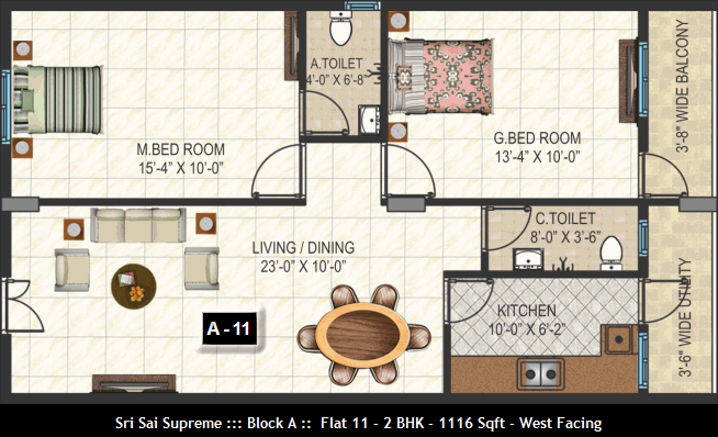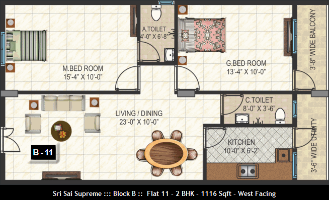 Sri Sai Supreme is nestled within the quiet and charismatic locale of Bannerghatta Road, Gottigere, close to Meenakshi Mall. The architecturally designed exteriors make for a happy, "welcome back home" every day. The aesthetic stand cladding gives a very contemporary look. The balconies on two sides of each apartment make for excellent natural lighting and ventilation, much needed for cheerful living. From spacious lounges to well-lit rooms, the homes at Sri Sai Supreme are exclusively designed for your lifestyle. Relish an exciting meal and celebrate your pleasures in a simple yet sophisticated way.