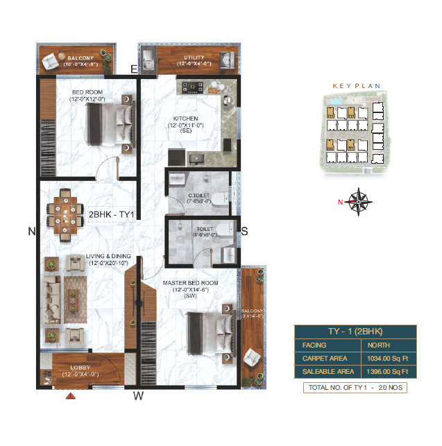 2 BHK Type-1 Floor Plan