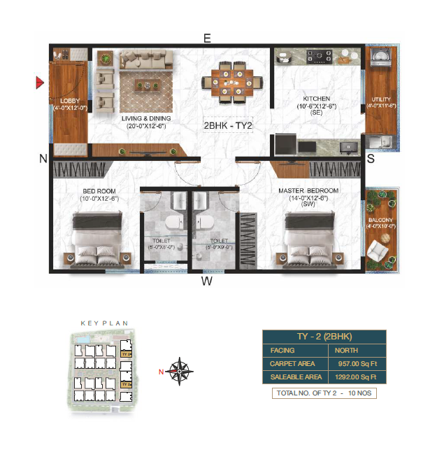 2 BHK Type-2 Floor Plan