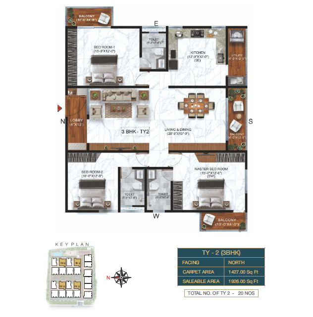 3 BHK Type-2 Floor Plan