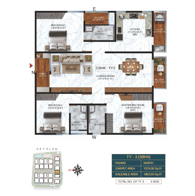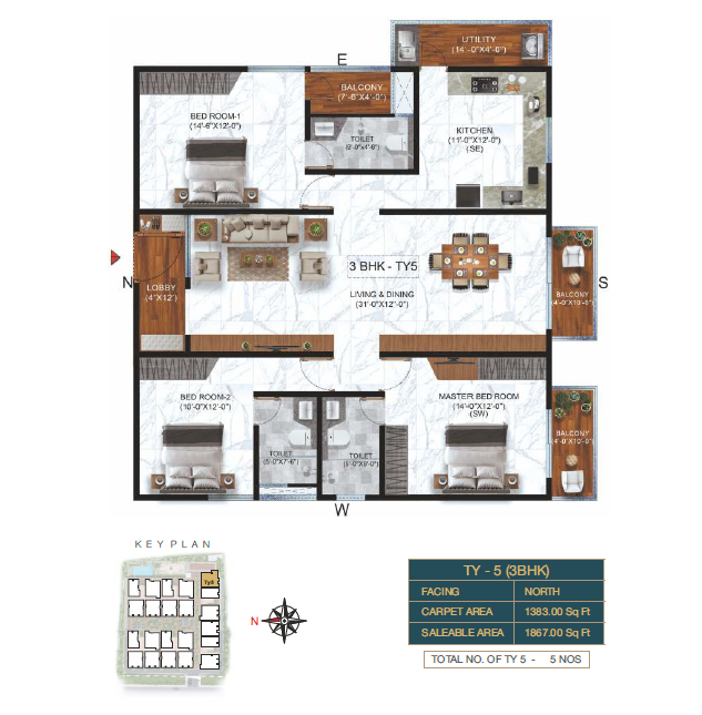 3 BHK Type-5 Floor Plan