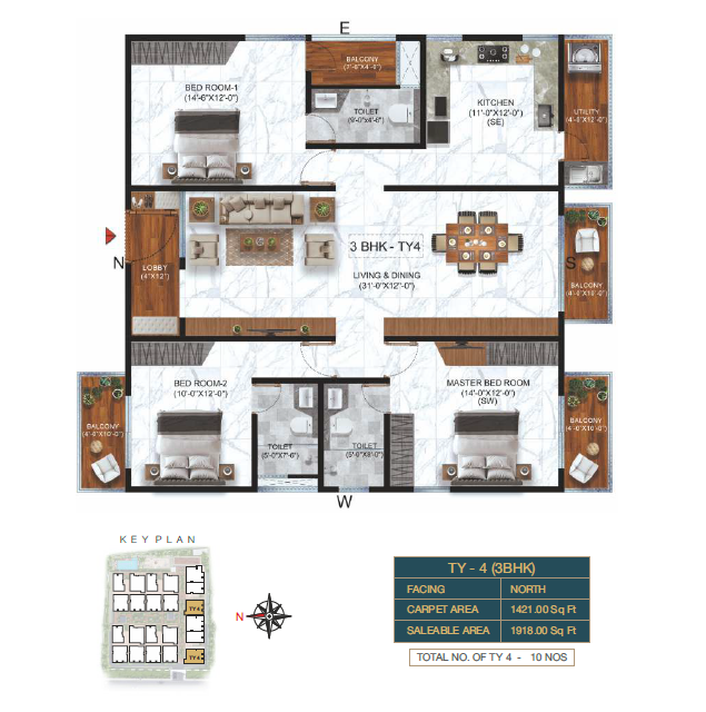 3 BHK Type-4 Floor Plan