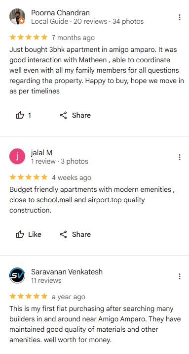 • 3-side open homes | No common walls