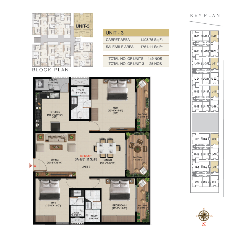 With a built up area of 1911 sqft (3 BHK) and 1380 sqft (2 BHK), you get a stunning luxurious spaces crafted to enhance everyday life.